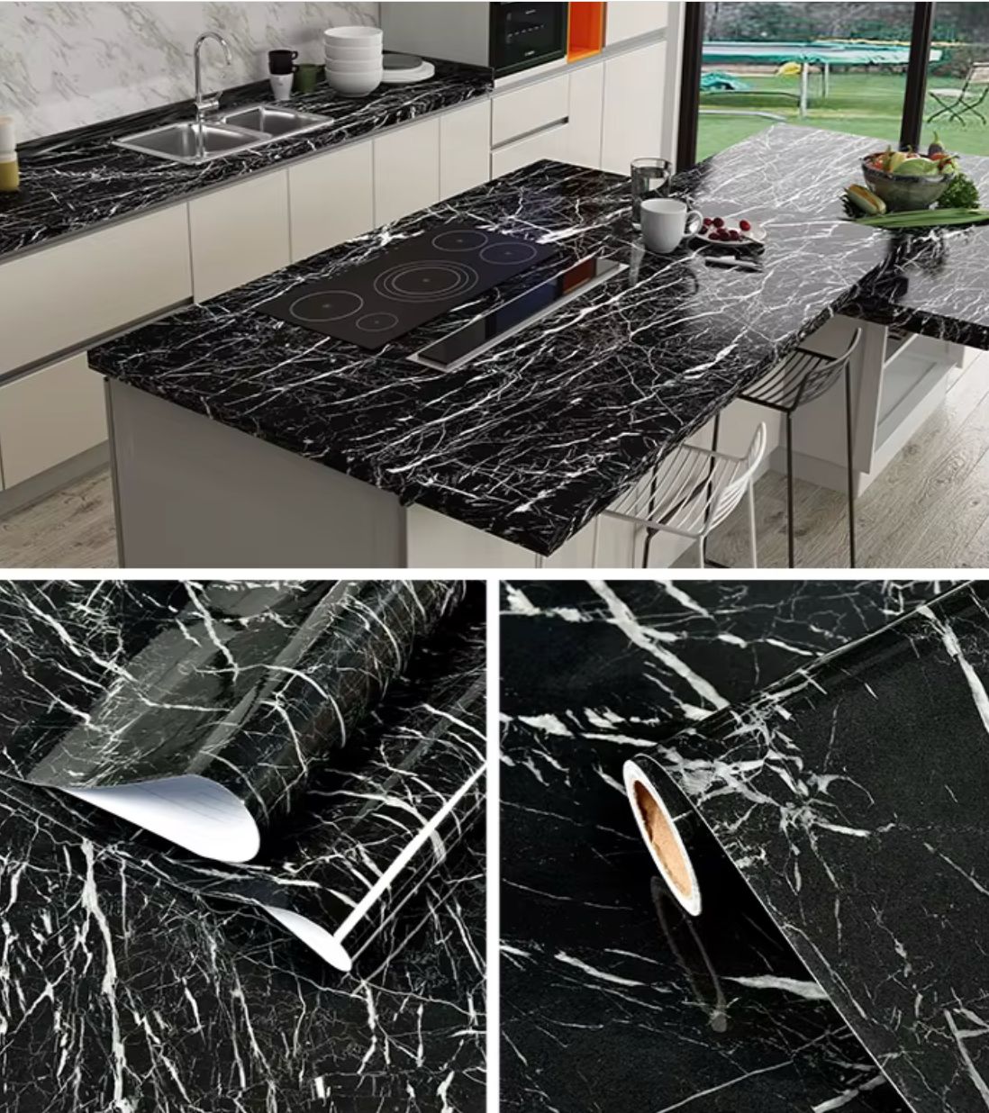 ✨ El vinilo adhesivo efecto Mármol Negro que transforma tu cocina, baño o mesa SIN OBRAS, sin polvo y sin gastar una fortuna.
